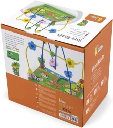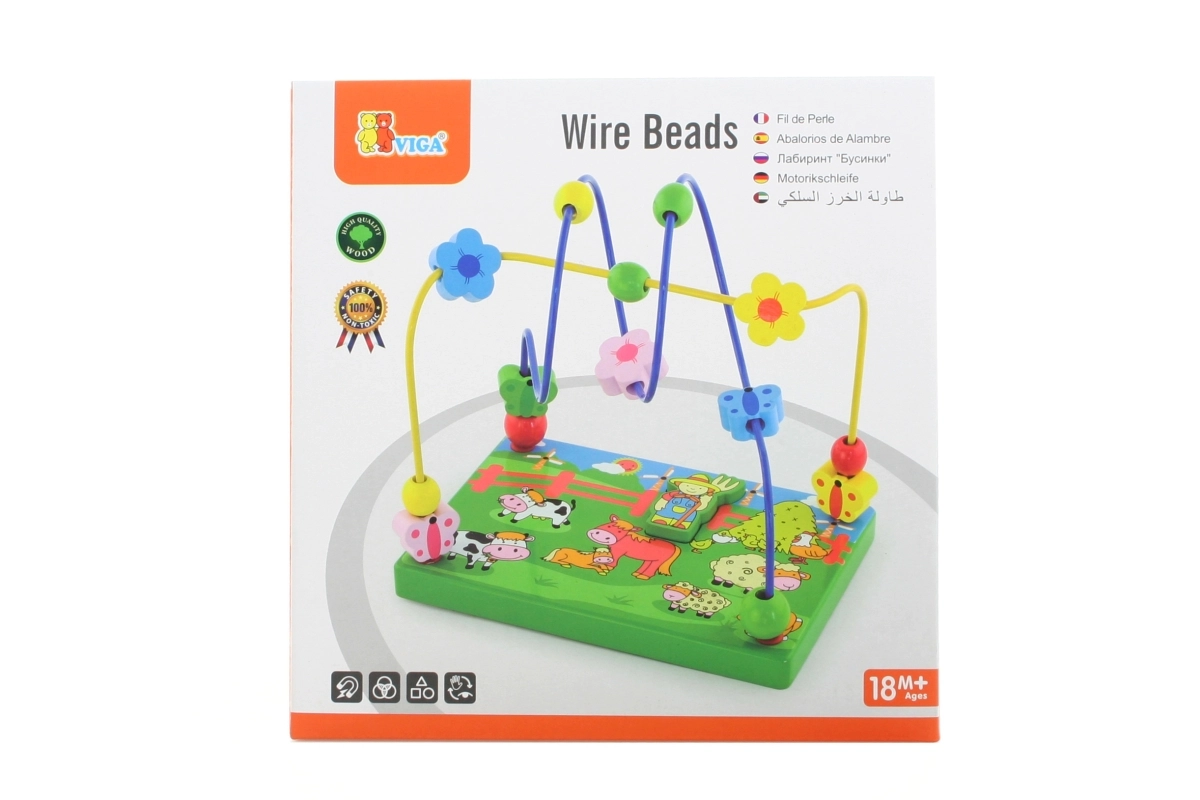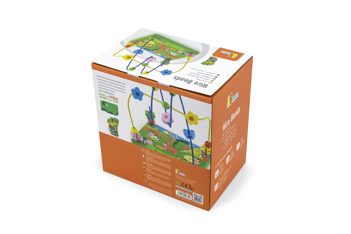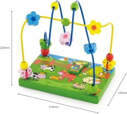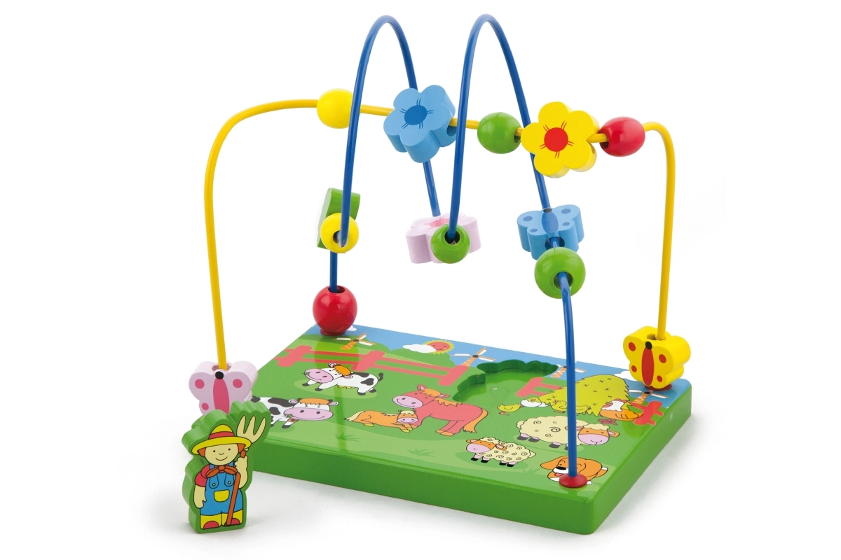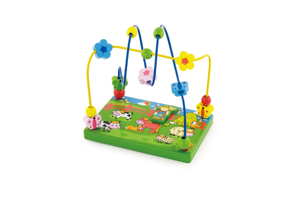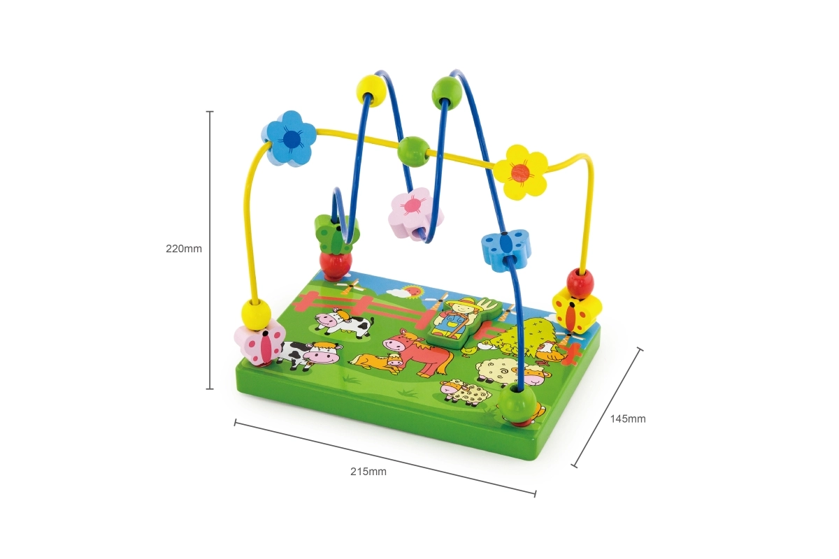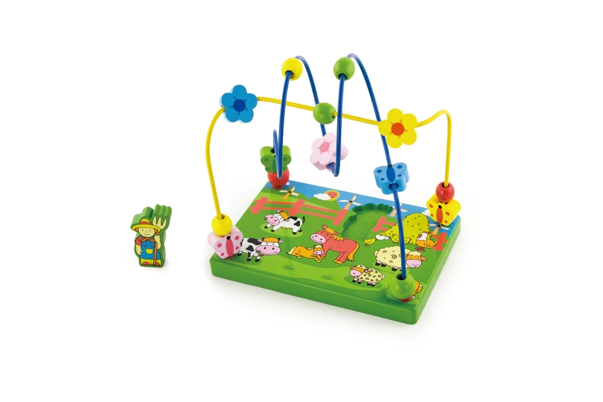 Découvrez un coloré labyrinthe de perles en bois sur le thème de la ferme, qui ravira les enfants grâce au déplacement des perles sur les fils métalliques et au jeu avec la figurine magnétique. La base en bois stable, illustrée de scènes de ferme, stimule l’imagination tout en apprenant aux enfants à se concentrer et à coordonner leurs mouvements.