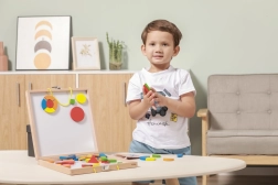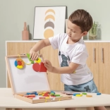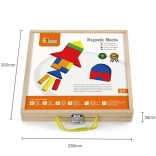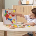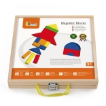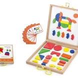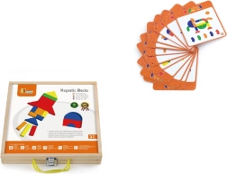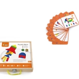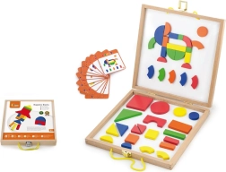 Le set comprend 42 pièces magnétiques en bois de formes et de couleurs variées ainsi que 12 cartes recto verso proposant au total 24 modèles astucieux pour bien démarrer. En jouant, les enfants exercent leur motricité fine, leur coordination œil–main, la perception des couleurs et des formes ainsi que leur représentation spatiale.