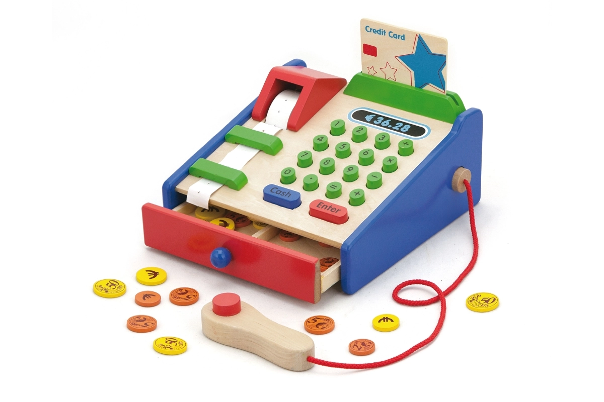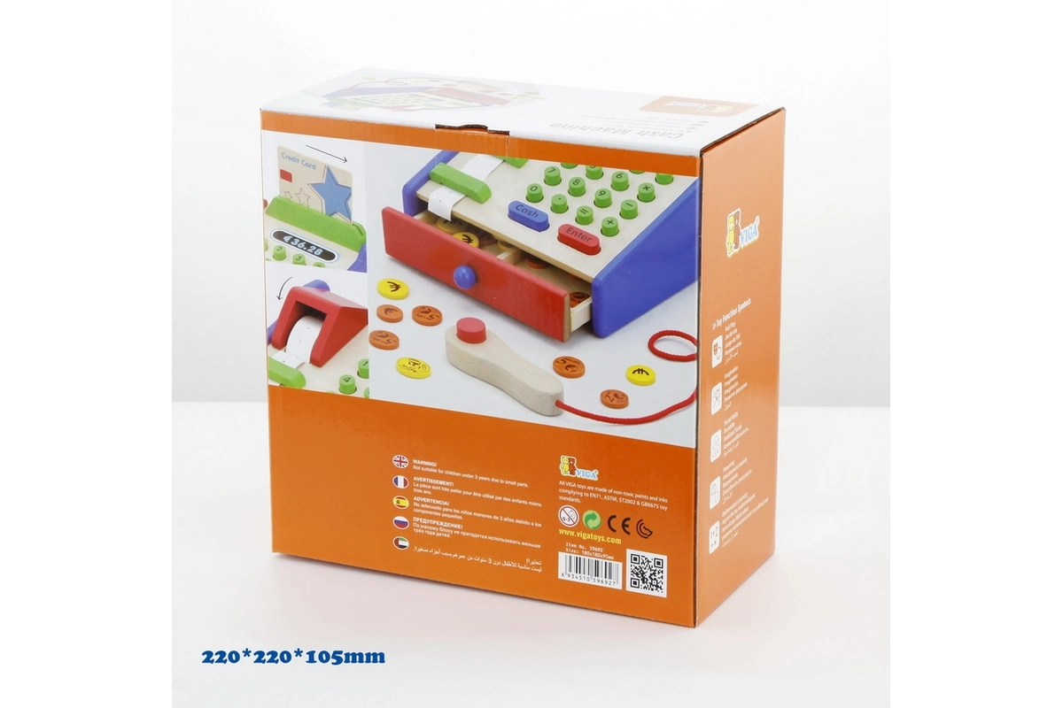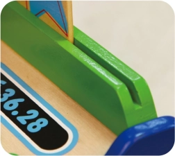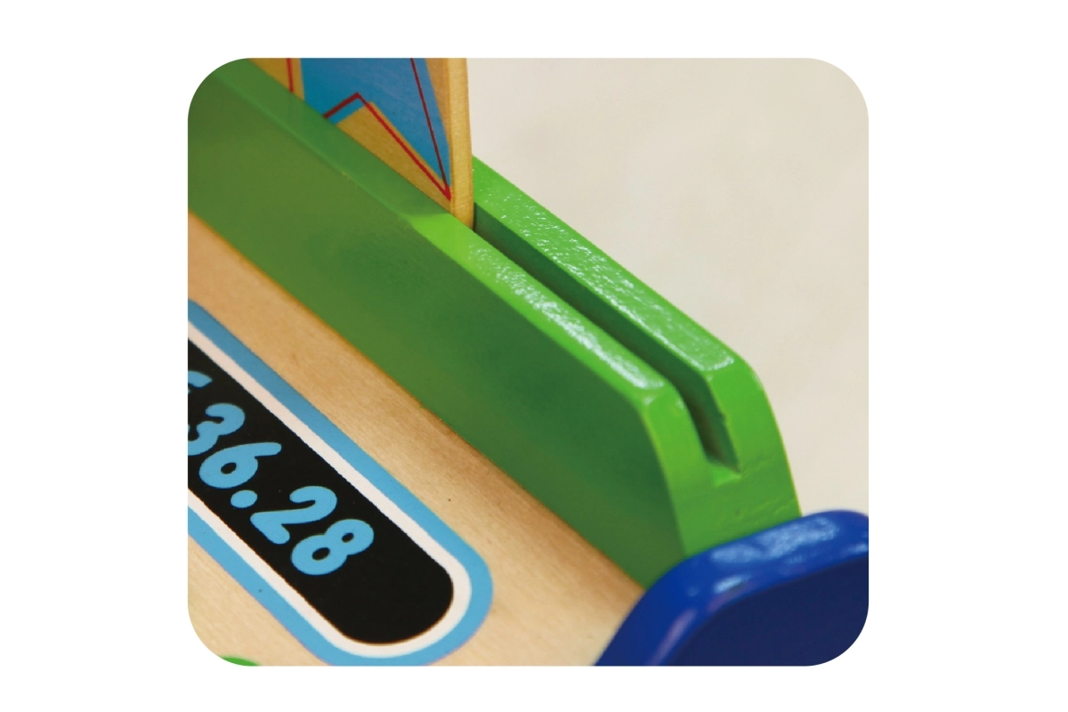 La caisse est fabriquée principalement en bois et complétée par des éléments plastiques résistants. Idéale pour jouer à la marchande à la maison ou à la maternelle, elle développe naturellement la pensée logique, les capacités cognitives et le rapport aux nombres dans l’esprit Montessori.