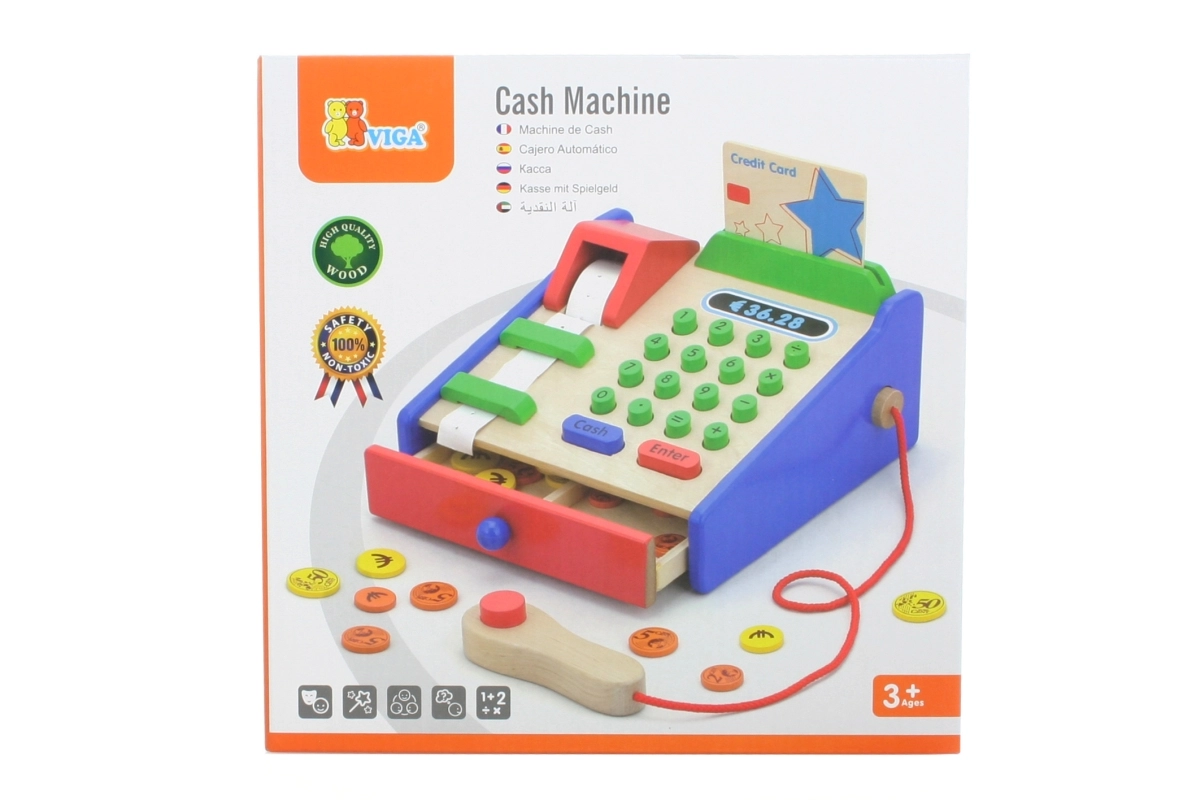 Offrez aux enfants un jeu de marchande amusant avec la caisse en bois de qualité VIGA. L’ensemble comprend 40 pièces, une carte de paiement, un scanner sur cordon et un rouleau de papier pour « tickets ». Favorise l’apprentissage du calcul, les compétences sociales et les principes Montessori dans un seul jouet.