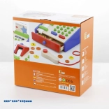 Cette caisse en bois colorée pour enfants offre une expérience d’achat réaliste : appuyer sur les boutons, ouvrir le tiroir avec de la « monnaie », payer par carte ou avec le scanner et imprimer des « tickets ». Grâce aux accessoires bien pensés, les enfants s’exercent facilement au calcul, à la communication et à la coopération.