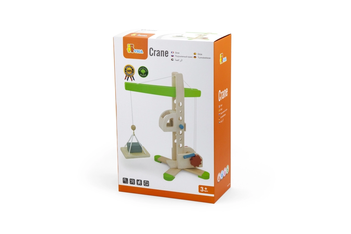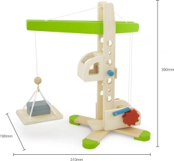 Cette grue en bois avec treuil offre aux enfants une expérience de chantier réaliste. Le bras pivotant, l’enroulement manuel et le système de poulie permettent de soulever et déplacer en toute sécurité de petits objets. Le bois naturel, les bords lisses et les détails verts soulignent le design intemporel et la durabilité du jouet.