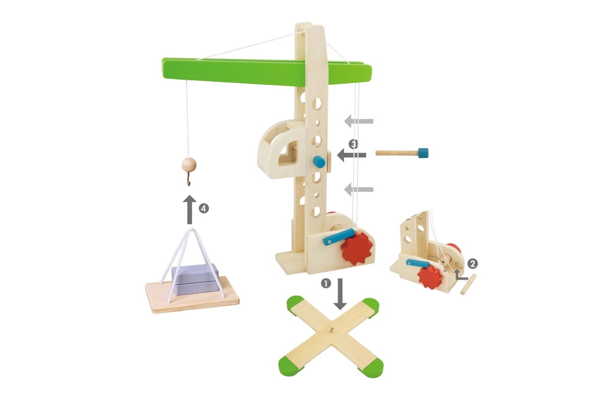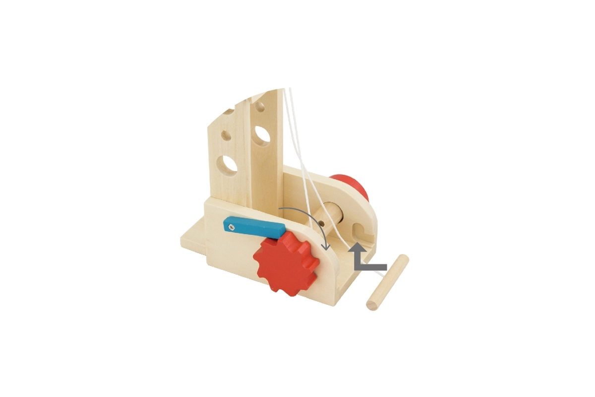 En tournant simplement la molette d’enroulement, les enfants peuvent lever et abaisser la charge. Le mécanisme favorise la coordination œil-main et offre un fonctionnement fluide et sûr.
