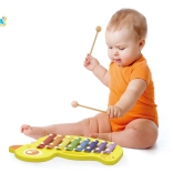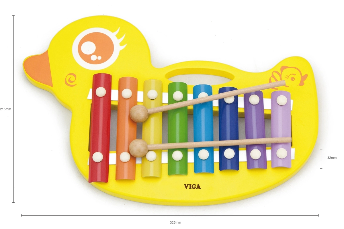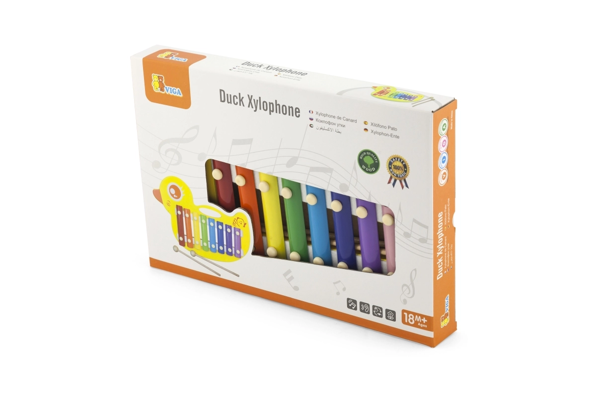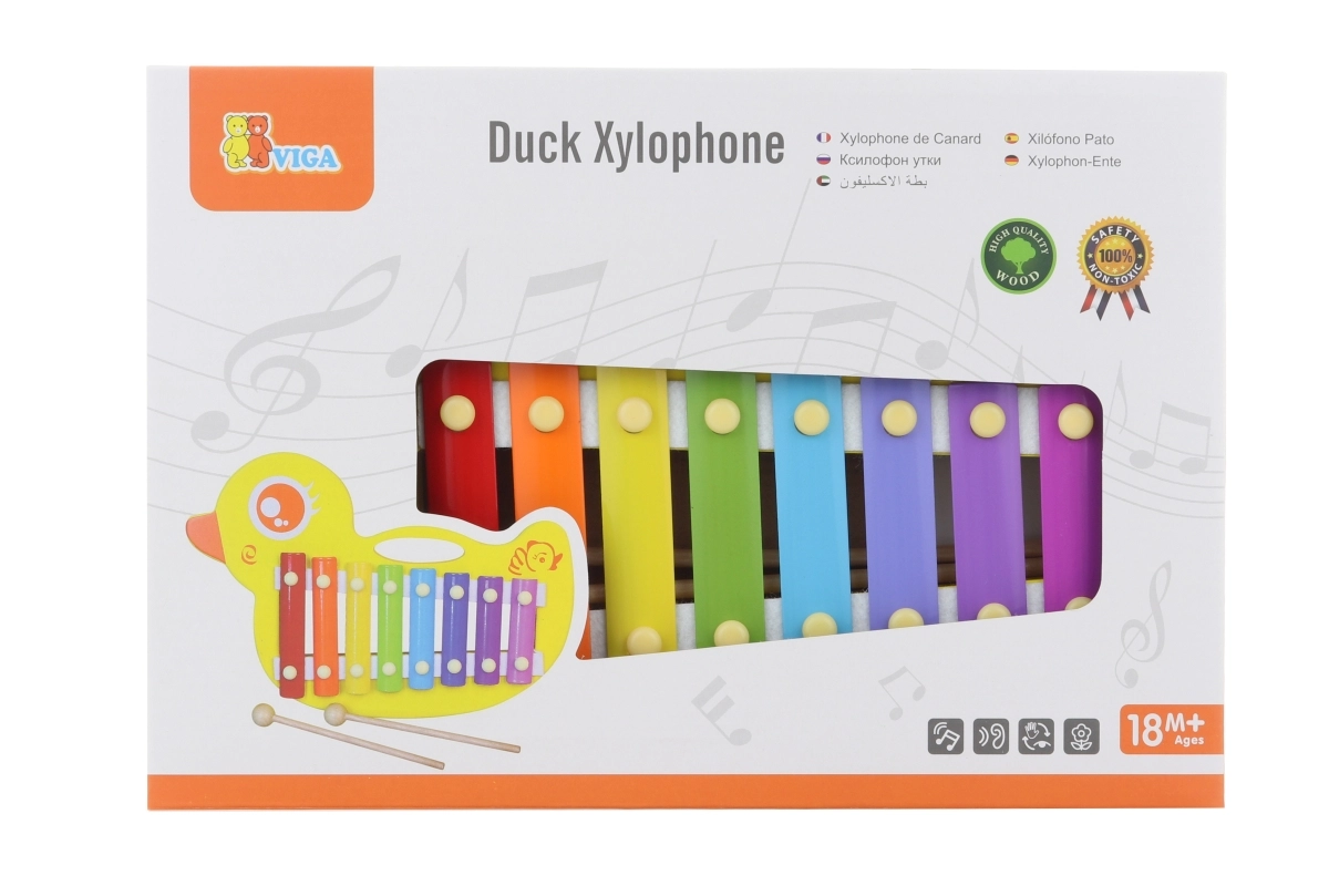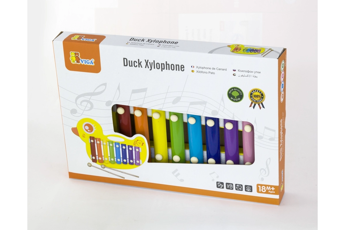 Éveillez l’imagination des enfants avec ce xylophone coloré en forme de petit canard. Le jouet favorise le sens musical, la motricité fine et la coordination œil-main. Grâce à son corps en bois solide et à ses lames métalliques accordées, il offre un son agréable et une longue durée de vie. Convient aux enfants dès 18 mois.