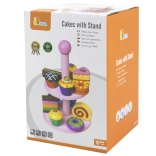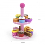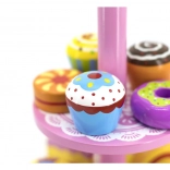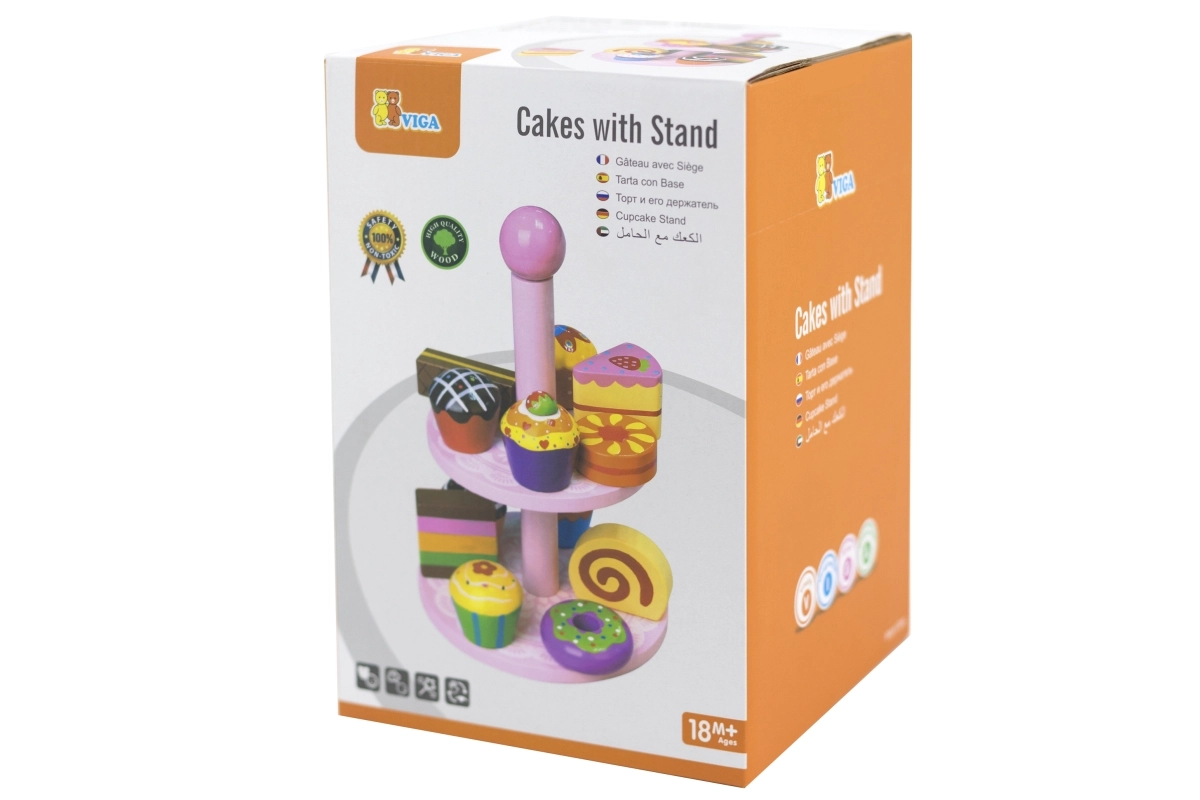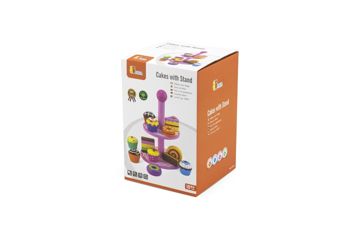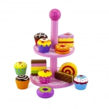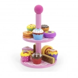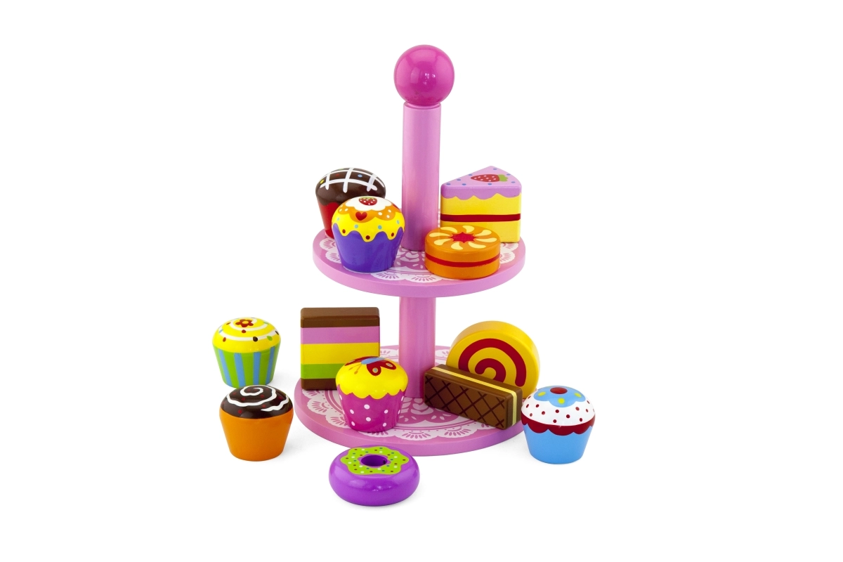 Ce set élégant de desserts en bois sur un présentoir à deux niveaux est idéal pour jouer au café, au goûter ou à la pâtisserie des enfants. Les pièces en bois de qualité, aux couleurs vives, invitent à l’exploration et développent la coordination œil-main.