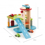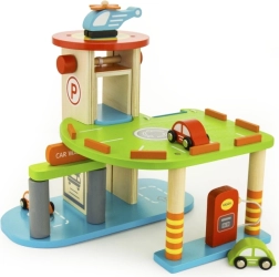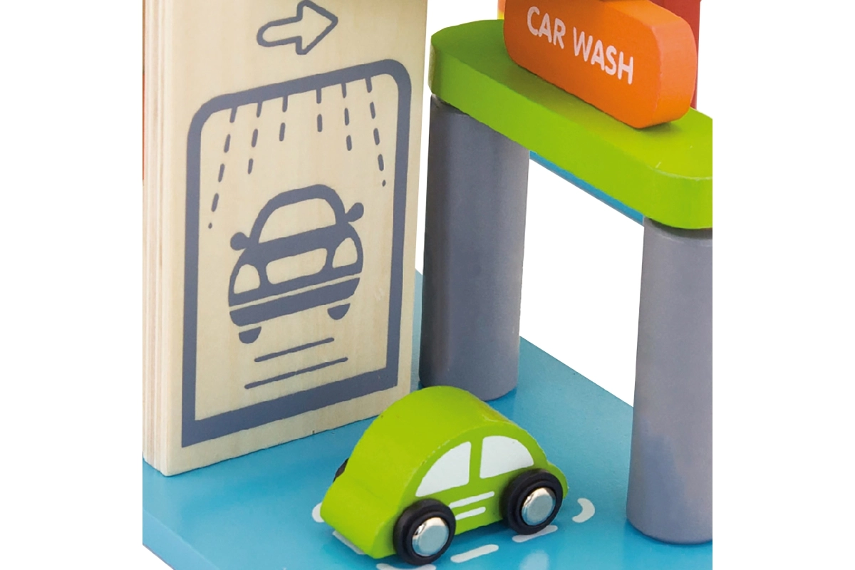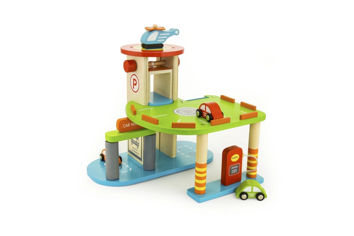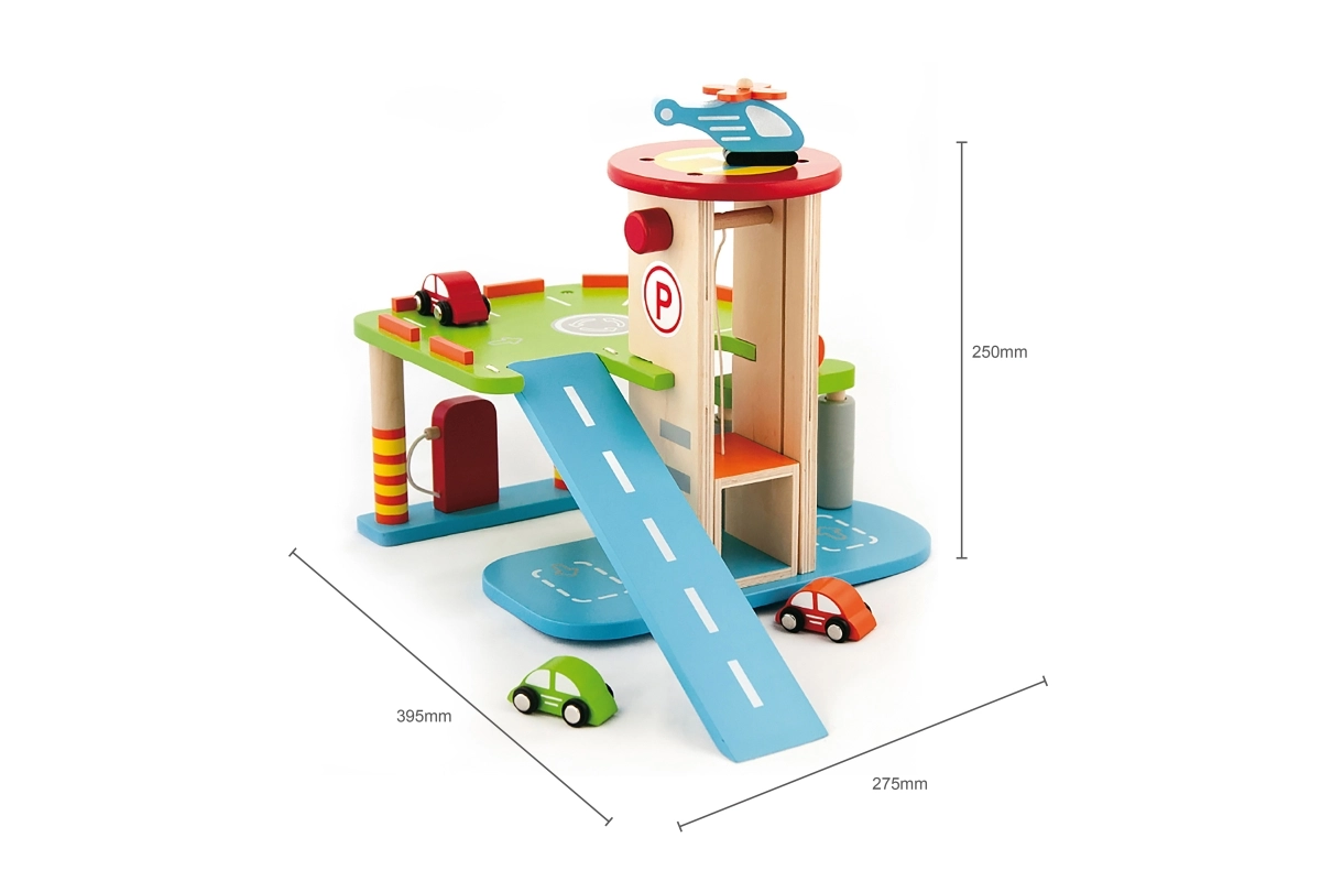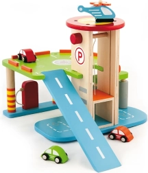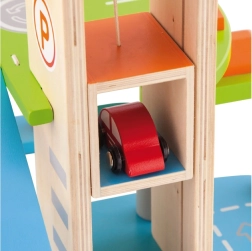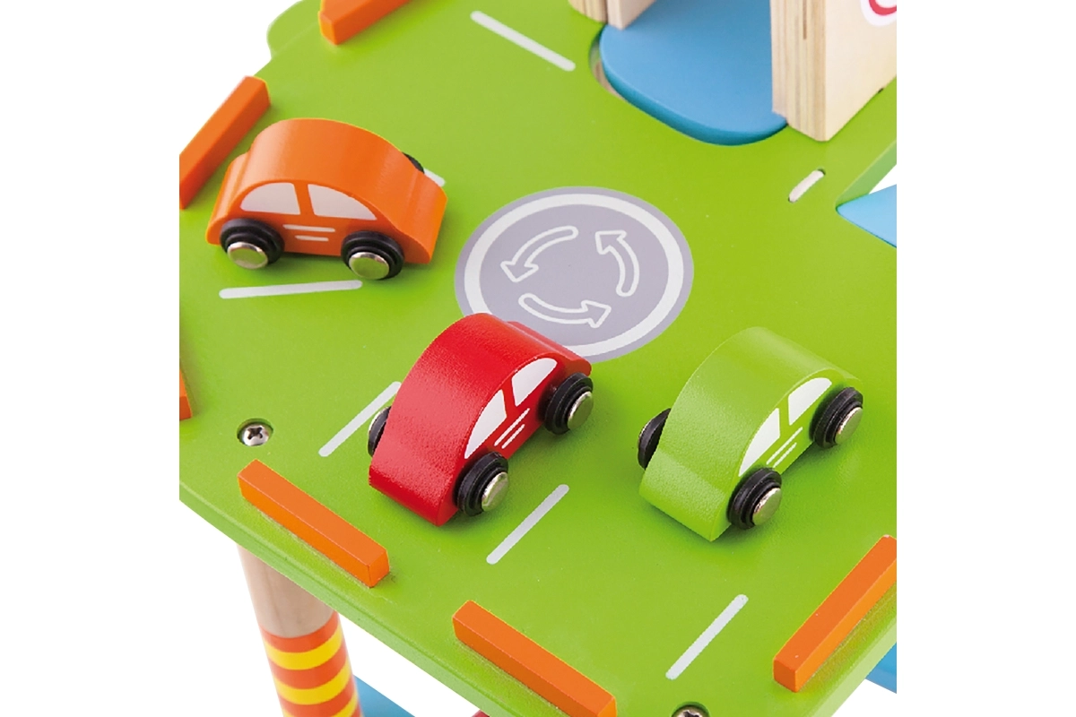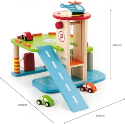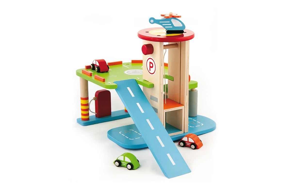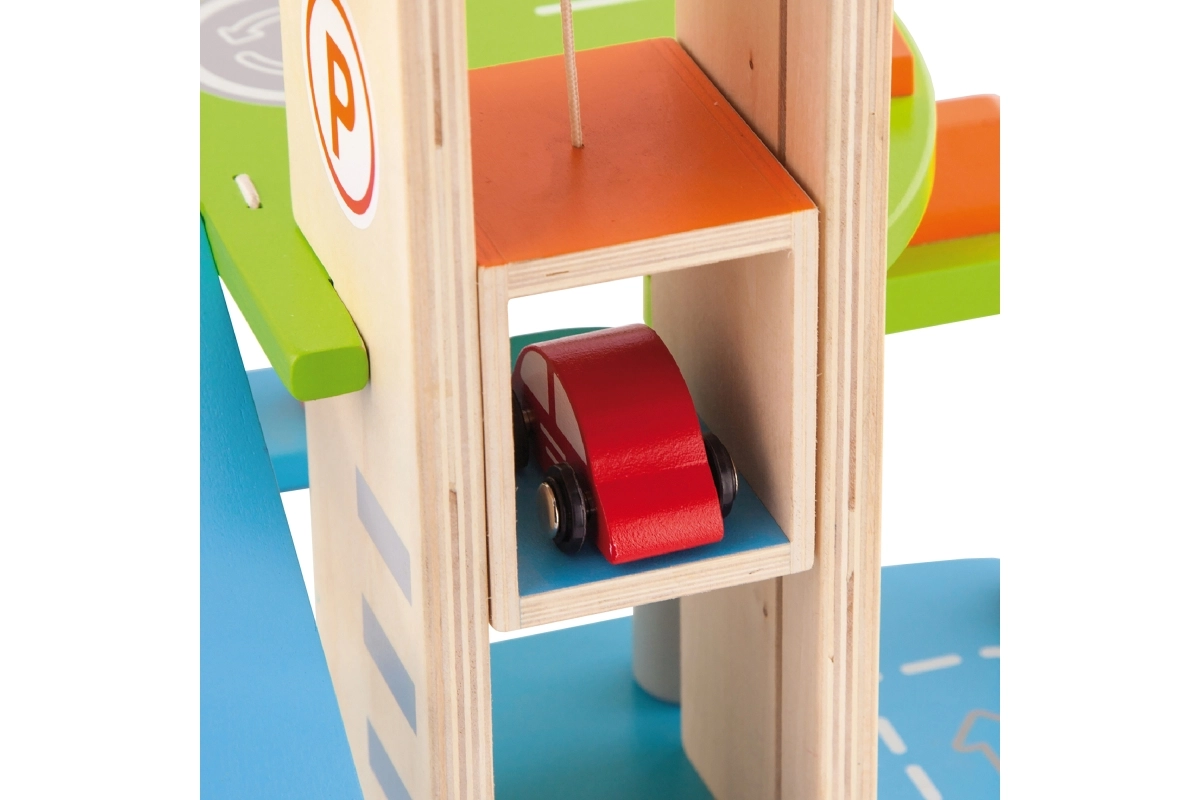 Ce garage en bois de qualité offre plusieurs niveaux de stationnement, une zone d’atterrissage pour hélicoptère et un ascenseur pratique pour déplacer facilement les voitures entre les étages. Grâce à son design bien pensé avec pistes, panneaux et accessoires, les enfants exercent leur coordination et développent leur imagination.