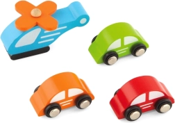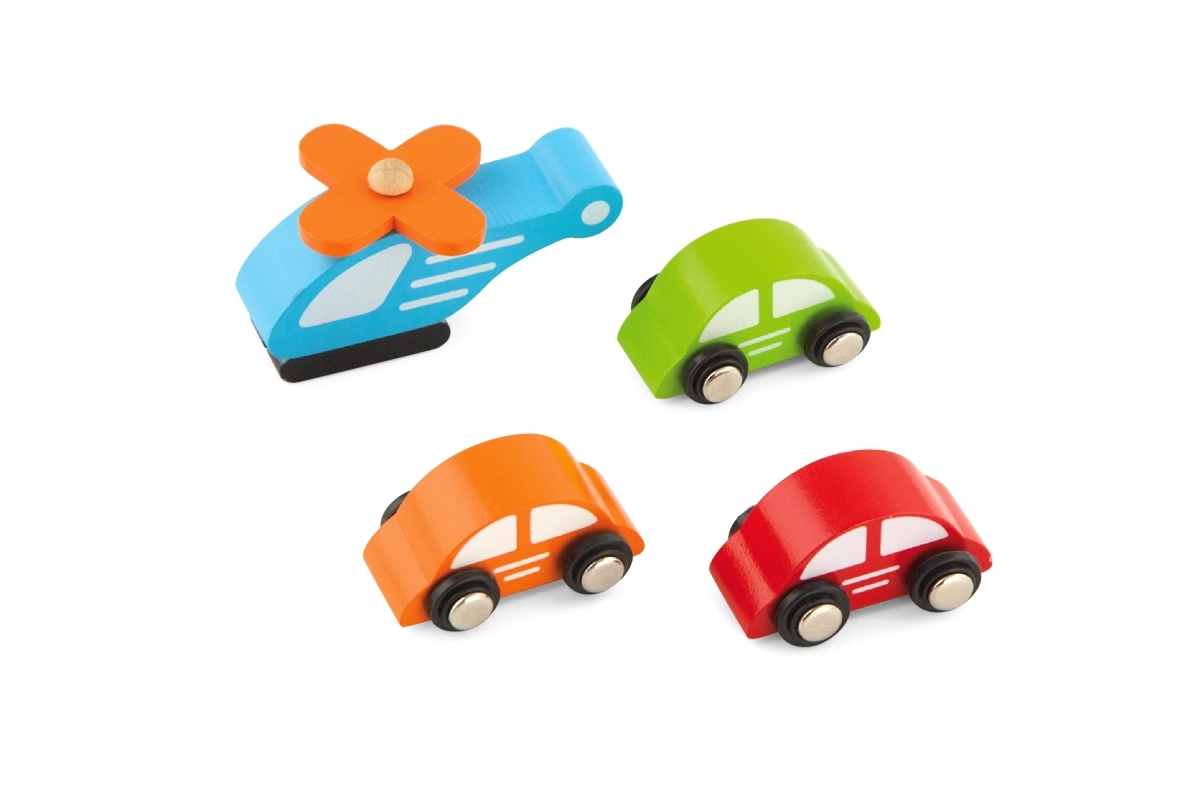 Le coffret inclut 3 petites voitures en bois et un hélicoptère, pour commencer à jouer dès le déballage. Des formes arrondies sûres et des matériaux durables, idéals pour un usage quotidien.