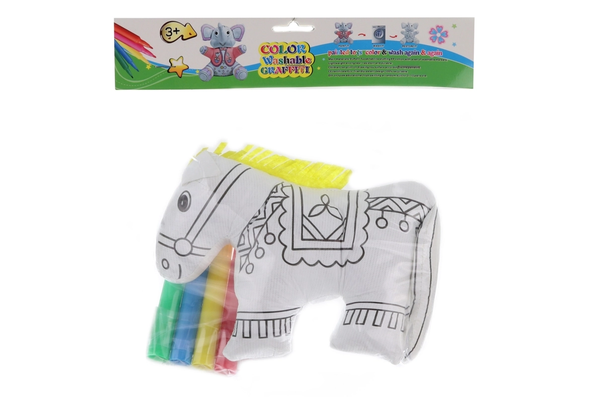 L’animal lavable en forme de cheval est un excellent choix pour les petits artistes. Grâce au matériau spécial en polyester, le cheval se lave facilement et se recolorie encore et encore, pour une créativité sans fin. Le set contient tout ce qu’il faut pour créer immédiatement.