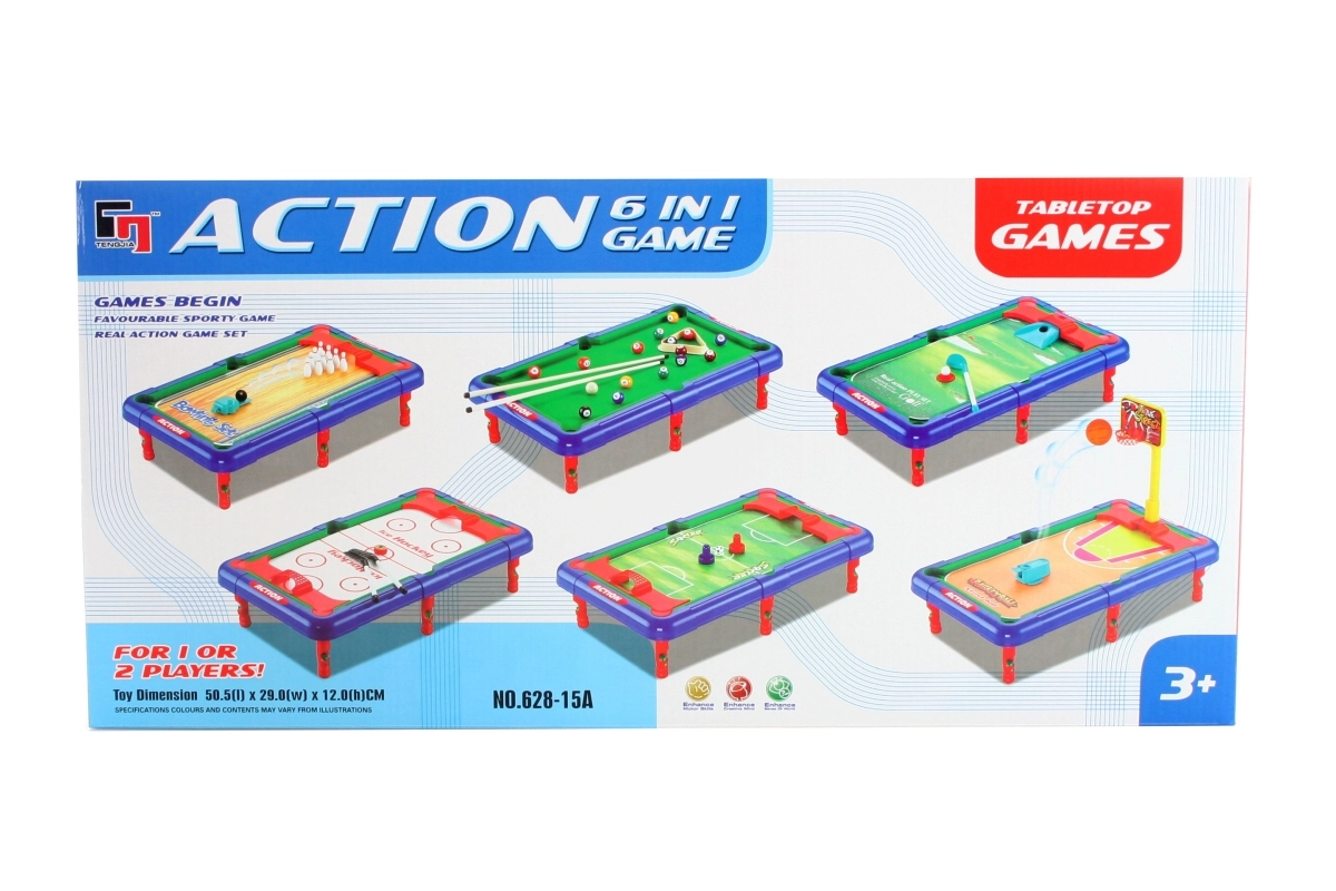 Profitez d’un divertissement sans fin avec cet ensemble universel de jeux de table 6-en-1 qui réunit des sports populaires dans un format compact. Sur une seule table, jouez au bowling, au basket-ball, au hockey sur glace, au billard, au golf et au football. Idéal pour les enfants dès 3 ans, il développe la motricité, la coordination et l’esprit de compétition, et constitue un excellent choix pour s’amuser à la maison.