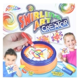 Ce kit créatif amusant offre aux enfants une manière unique de réaliser des œuvres colorées. Grâce au principe simple de rotation et de gouttes de peinture, naissent des spirales saisissantes et des effets abstraits qui enthousiasmeront les enfants.