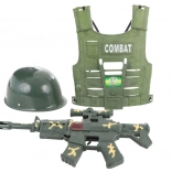 Ce set est parfait pour les enfants qui aiment jouer aux soldats. L'ensemble contient tout le nécessaire pour des jeux militaires réalistes : casque, gilet de combat et mitraillette. Tous les composants sont fabriqués en plastique résistant, sûr pour les jeunes enfants. Grâce aux détails réalistes et aux couleurs, les enfants s'immergeront dans le monde des aventures militaires.