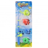 - Set complet : canne (env. 37 cm) + 4 poissons (env. 8–11 cm)