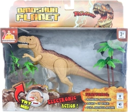 Le coffret inclut 2 arbres en plastique, permettant aux enfants de créer facilement leur propre scène préhistorique. Le dinosaure a une taille compacte d’environ 23,5 cm, idéale pour les petites mains et pour l’emporter partout. L’alimentation est assurée par 3× piles AG13, déjà incluses dans l’emballage.