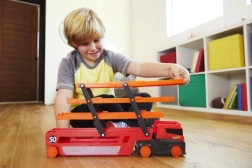 Stockez jusqu'à 50 petites voitures sur six niveaux extensibles du transporteur.