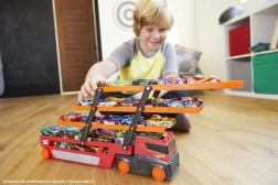 Mega Transporteur Hot Wheels 50e anniversaire est un grand camion de jeu qui apporte beaucoup de divertissement et d'aventures incroyables. Avec ses six niveaux extensibles, il peut contenir jusqu'à 50 petites voitures et est décoré avec des graphismes spéciaux pour le 50e anniversaire de la marque.