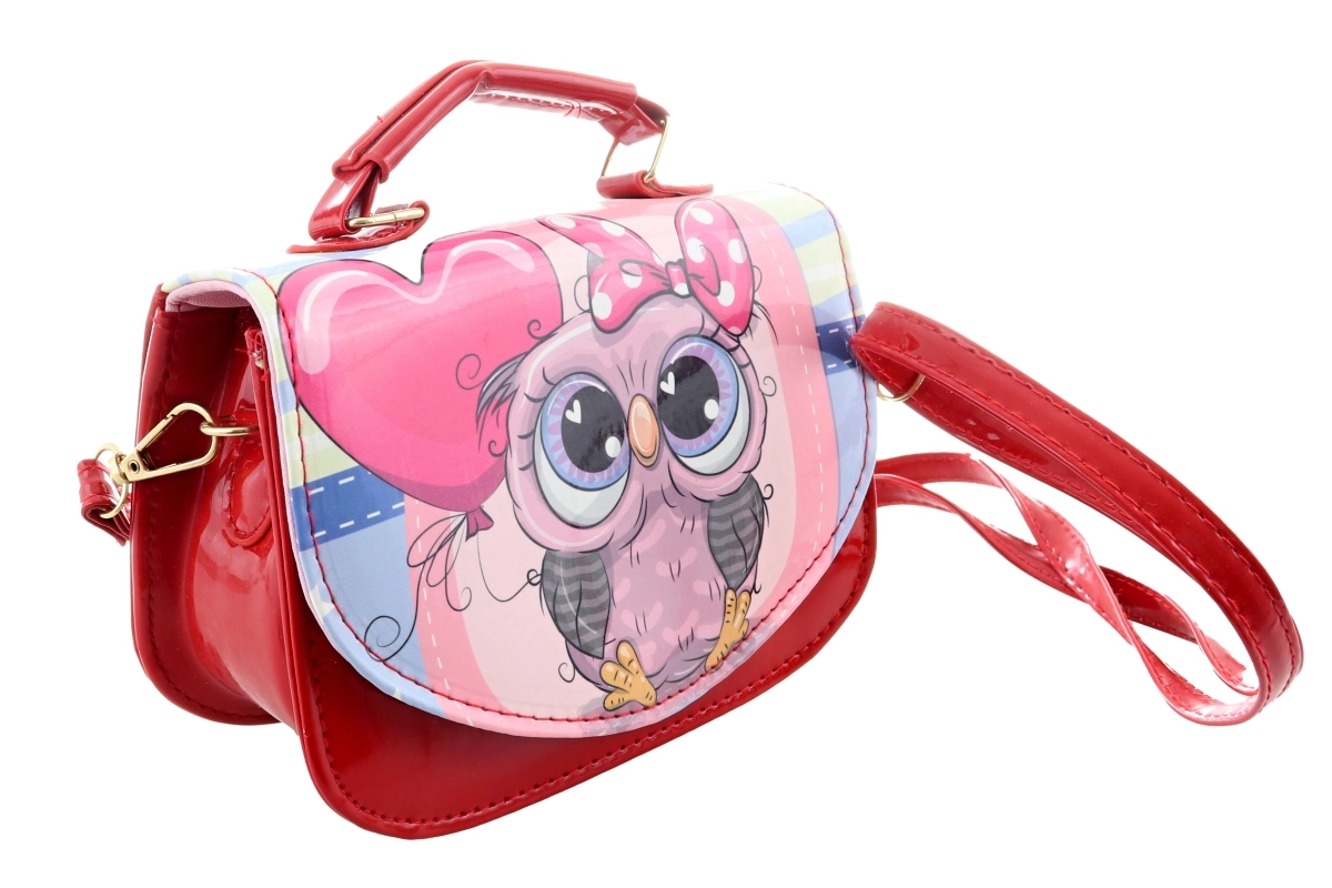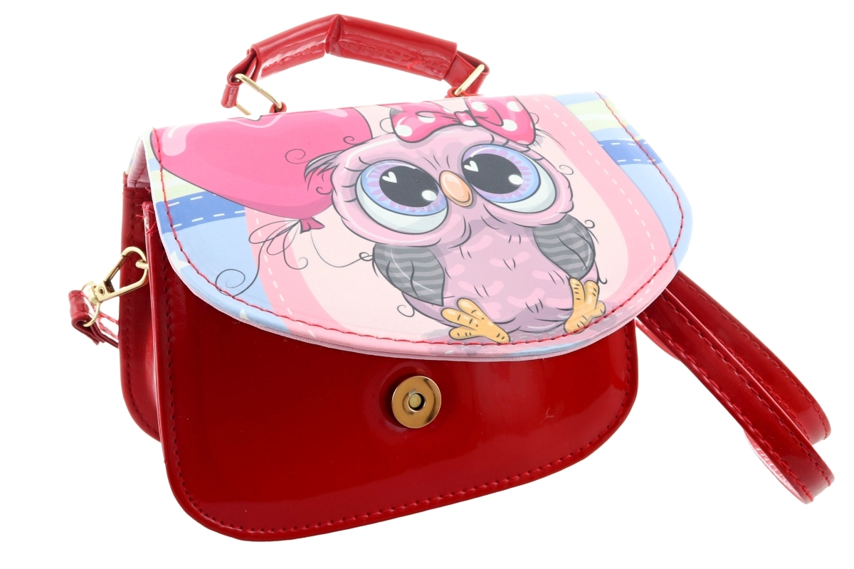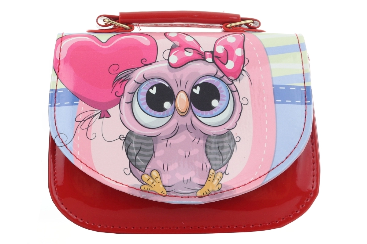 Ce petit sac élégant de couleur rouge séduit par un motif de hibou avec nœud et petits cœurs. Sa finition brillante et ses détails dorés lui confèrent un style parfait pour les promenades, les visites et les fêtes d’enfants. Grâce à ses dimensions compactes, il est agréable à porter et peut contenir toutes les petites affaires que les enfants aiment garder avec eux.
