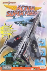 Amusant avion de chasse en plastique pour enfants dès 5 ans, offrant beaucoup d’action à la maison comme au jardin. Une fois suspendu à la corde fournie, il tourne automatiquement en rond, s’allume et fait tourner son hélice pour un effet de vol réaliste. Alimentation par 2× piles AA (non incluses). Dimensions compactes du jouet env. 28 × 21 cm.