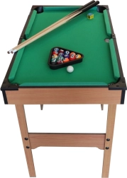 Un billard compact pour enfants, en bois de qualité, apporte un excellent divertissement pour petits et grands joueurs. L’emballage comprend 2 queues, 16 boules de billard et des accessoires complets. Grâce à ses dimensions, il est idéal pour la chambre d’enfant et pour une première initiation aux règles du jeu.