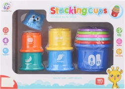 Gobelets pliables en plastique. Contient 11 gobelets de différentes couleurs et tailles. Dimensions de l’emballage env. 26 × 18,5 × 9 cm. Âge 6 mois et plus.