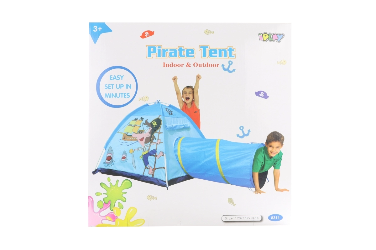 Amusante tente pour enfants au motif pirate avec tunnel intégré offrant des heures de jeu créatif à la maison comme au jardin. Grâce à ses dimensions d’environ 170 × 112 × 94 cm, elle offre assez d’espace pour jouer et se cacher. Sa structure légère permet un montage et un transport faciles, idéale pour les enfants dès 3 ans.