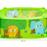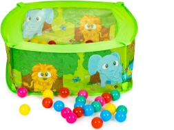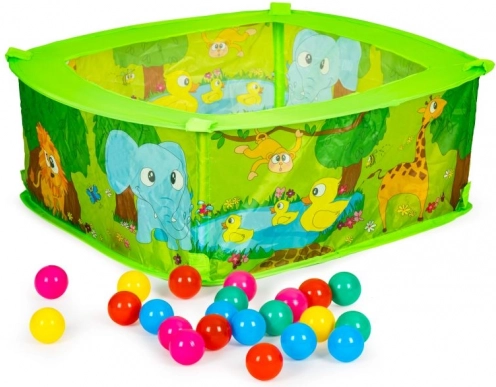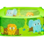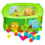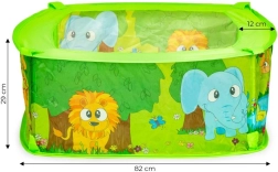 Parc avec fond et 50 balles – non destiné à l’eau, dimensions env. 75 cm x 75 cm x 30 cm. L’emballage comprend 50 balles. Vous pouvez utiliser la piscine à la maison dans la chambre d’enfant, mais aussi dehors au jardin en été. Les enfants s’amuseront énormément en y jouant. Âge 6 mois et plus.