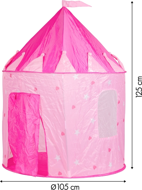 Chaque enfant mérite son propre coin de jeu. Cette tente en forme de château de princesse offre un espace douillet et sûr pour l’imagination, les cache-cache et la lecture. Grâce à son design attrayant avec cœurs et étoiles, elle s’intègre parfaitement dans une chambre d’enfant, sur la terrasse ou au jardin.