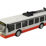 Découvrez un trolleybus finement détaillé dans la traditionnelle combinaison rouge-blanc-noir, comme on en voit dans certaines villes tchèques. Le modèle est fabriqué en métal de qualité avec des éléments en plastique, ce qui le rend à la fois solide et léger pour les mains des enfants. Grâce à la rétrofriction, le trolleybus démarre tout seul après l’avoir relâché et offre beaucoup d’amusement.