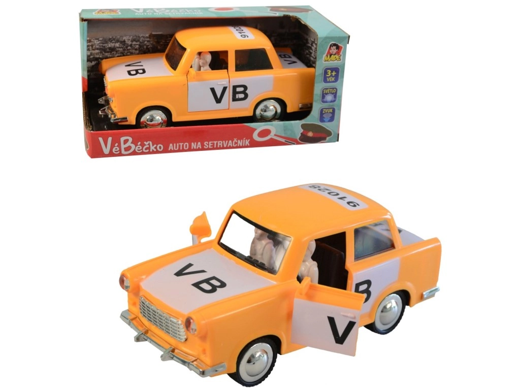 La voiture rétro stylée VB apporte l’atmosphère des véhicules de la Sécurité publique au format 17 cm. Elle propose une traction à friction, des portes ouvrantes et émet un bruit de moteur lorsque l’on appuie sur le bouton. Cadeau idéal pour les petits comme pour les grands fans de modèles classiques, avec un emballage en tchèque.