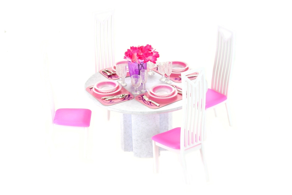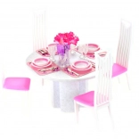 Le set de salle à manger élégant pour poupées Glorie transforme chaque jeu d’enfant en un festin réaliste. Il comprend une table ronde, 4 chaises et 4 services de table complets. Idéal pour le jeu créatif et le développement de l’imagination des enfants à partir de 3 ans.