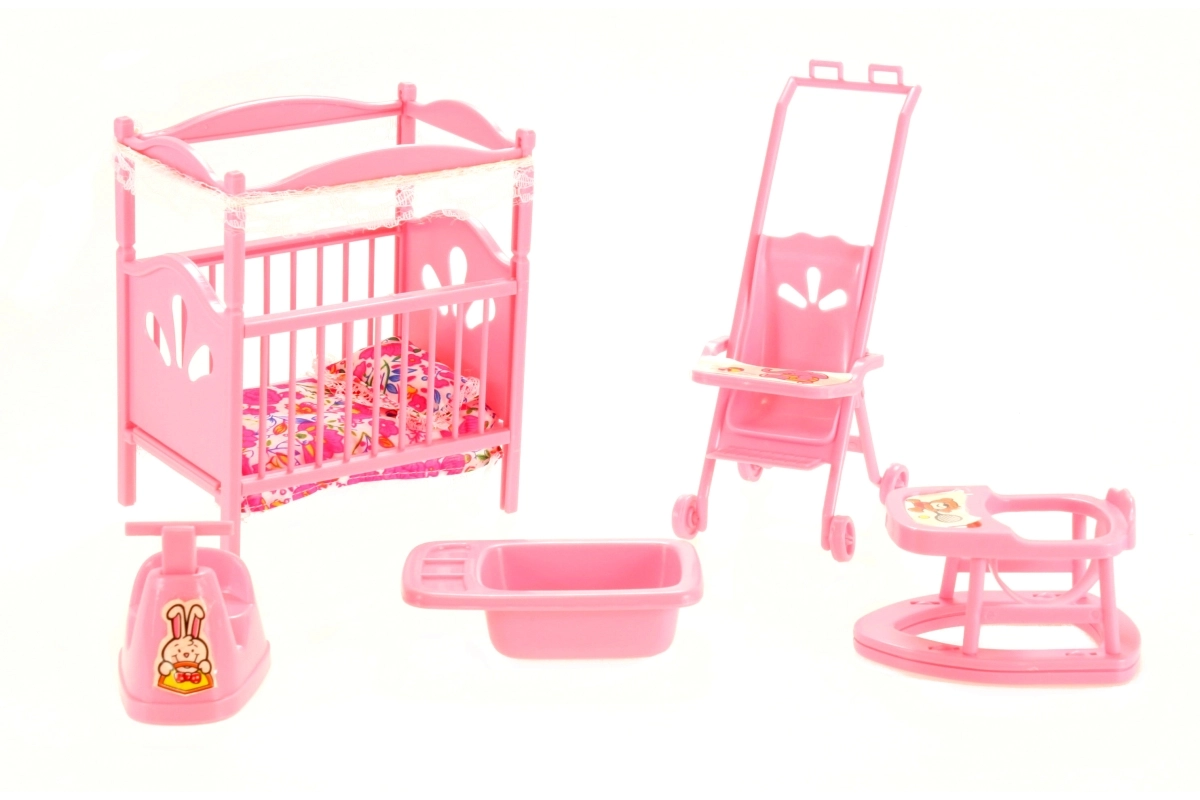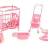 L’ensemble complet pour chambre d’enfant de poupée GLORIE ravira chaque petit·e soignant·e. Il comprend un lit avec couette et coussin, une poussette, un trottage (youpala), un pot et une baignoire – le tout en plastique résistant et aux dimensions idéales pour jouer. Parfait pour le développement de l’imagination et le jeu de rôle. Convient dès 3 ans.