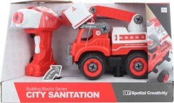 Un jouet amusant et éducatif pour les petits techniciens : un camion de pompiers à visser que les enfants assemblent à l’aide du tournevis ou de la perceuse fournis. En insérant le moteur de la perceuse dans le camion, le véhicule peut être télécommandé et rouler en avant et en arrière. Le camion émet des effets sonores, convient dès 3 ans et est alimenté par 4× AA (non incluses) et 3× AG13 (incluses).