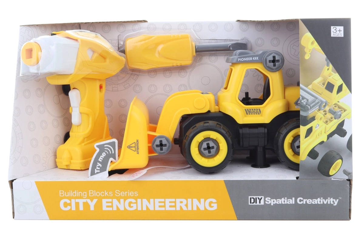 Une chargeuse à visser télécommandée amusante ravira les petits constructeurs dès 3 ans. Les enfants assemblent eux-mêmes le véhicule à l’aide du tournevis ou de la perceuse fournis, puis profitent de la conduite en avant et en arrière. Sont inclus un moteur amovible de la perceuse, des sons réalistes et une commande simple. Assemblage créatif, contrôle RC, effets sonores et développement de la motricité réunis dans un seul set de jouets.