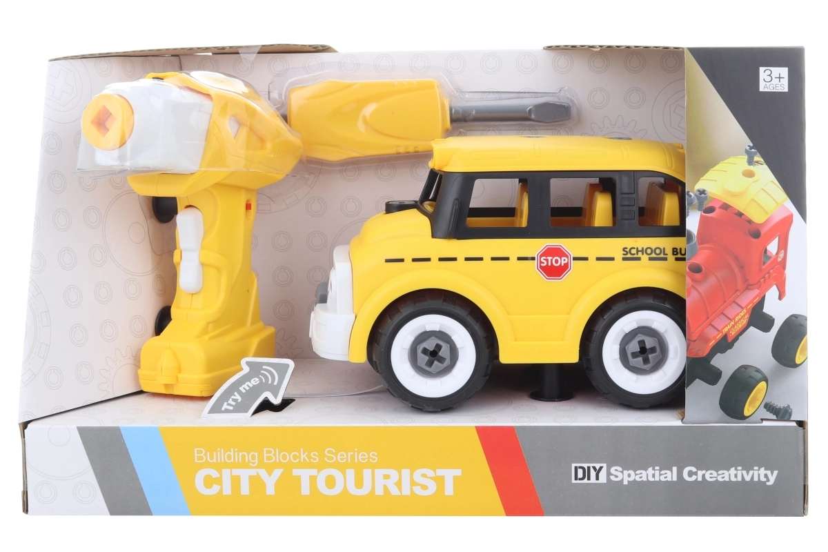 Un kit de construction amusant et un jouet RC en un seul produit ! Les enfants assemblent eux-mêmes cet autobus à l’aide d’un tournevis ou d’une perceuse, puis peuvent le piloter en avant et en arrière. Grâce au moteur amovible de la perceuse, aux sons réalistes et au contrôle simple, le jouet offre beaucoup d’amusement interactif tout en développant la motricité fine et la créativité. Structure à visser, commande RC, effets sonores, assemblage facile.