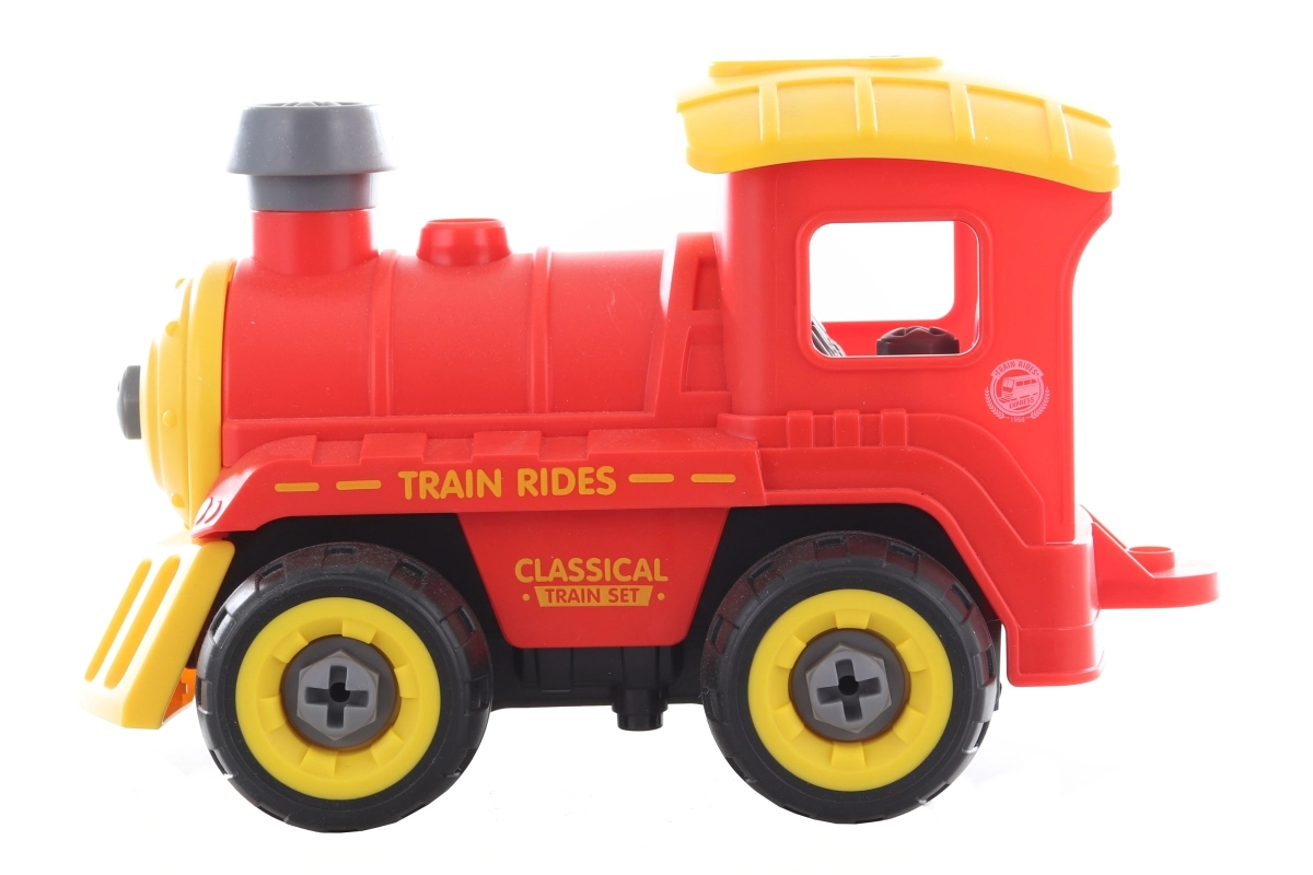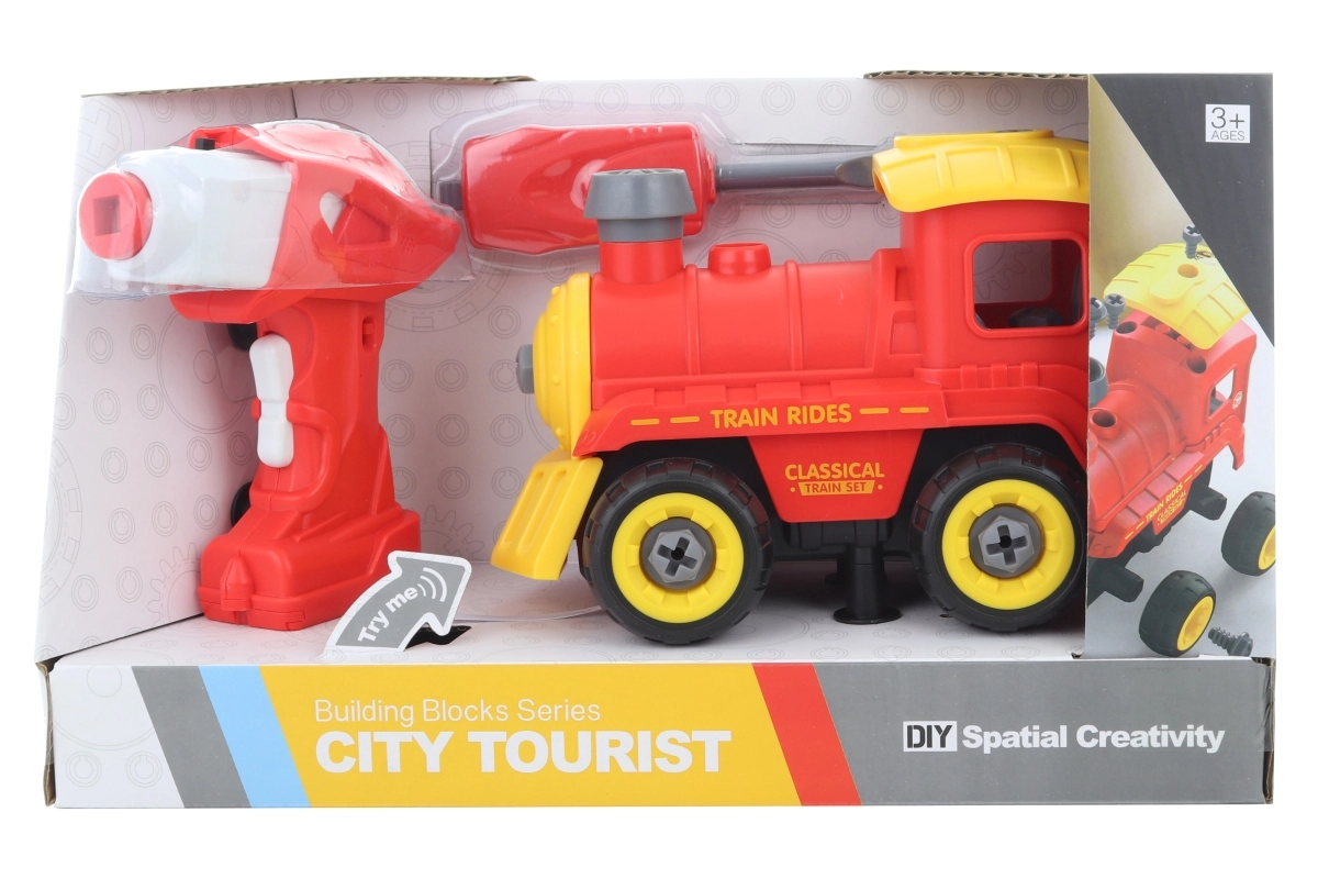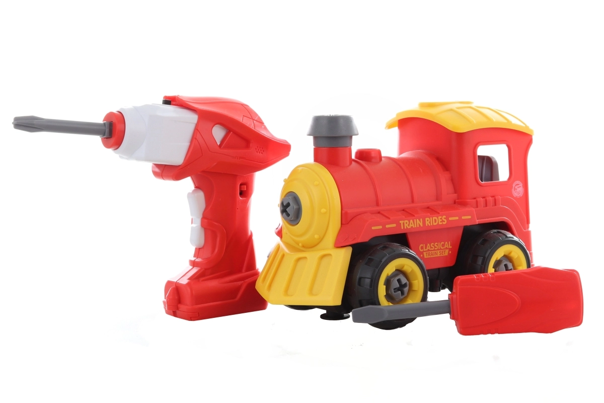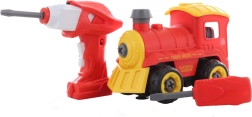 Découvrez un jeu créatif avec un train de construction que les enfants assemblent eux-mêmes puis pilotent à distance. Le tournevis et la perceuse sont inclus, avec un moteur amovible. Une fois le moteur inséré dans la locomotive, elle roule en avant et en arrière, émet des sons réalistes et développe la motricité fine ainsi que les compétences techniques. Idéal pour les enfants dès 3 ans.