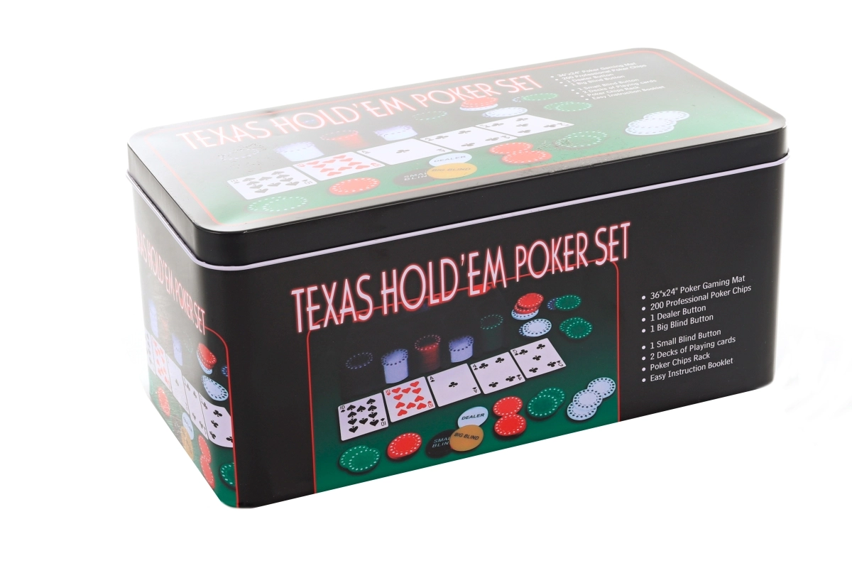 Profitez d'une expérience professionnelle avec un set de poker maison qui comprend 200 jetons et d'autres accessoires nécessaires pour jouer dans une élégante boîte en métal.