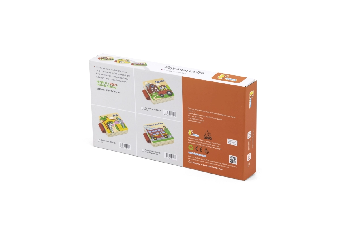 Découvrez le monde de la ferme avec ce joli petit livre en bois pour les tout-petits. Il offre des pages solides en bois, de simples images d’animaux et du texte en tchèque, qui soutiennent le développement précoce du langage, de la motricité et de la reconnaissance. Idéal dès 12 mois pour un apprentissage sûr et amusant.