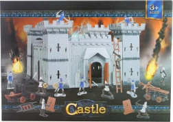 Set de jeu de siège du château. Comprend un château d’environ 28 x 28 x 29 cm, des chevaliers et des armes pour assiéger le château. Chevaliers d’environ 6 x 4 cm. Matière plastique. Dimensions de l’emballage environ 36 x 25 x 7 cm. Âge 3+