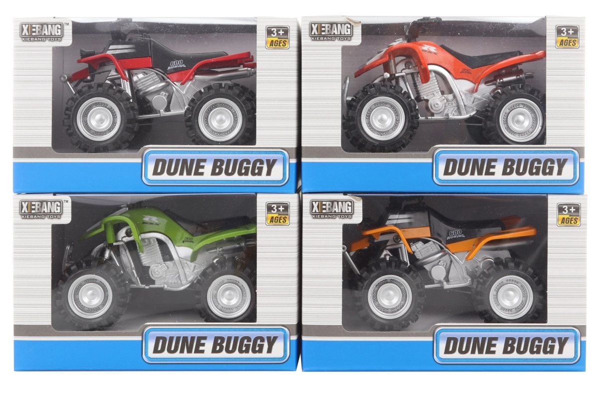 Ce modèle de quad est idéal pour les petits amateurs de véhicules tout-terrain. Les pièces métalliques augmentent la résistance, tandis que les éléments en plastique apportent des détails et de la légèreté. Le jouet est conçu pour résister aux courses quotidiennes des enfants et aux aventures imaginaires.