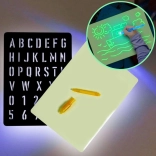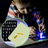 Le tableau est idéal pour le dessin individuel ou l'utilisation de pochoirs, avec des résultats optimaux dans l'obscurité. Avec notre ensemble, les enfants créeront une quantité illimitée d'images qui prendront toujours vie à nouveau.