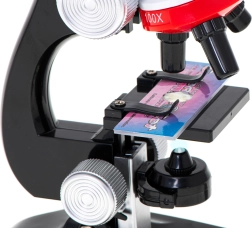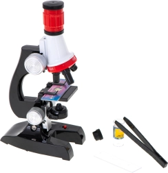Ce microscope est idéal pour les petits scientifiques et offre trois niveaux d'agrandissement : 100x, 400x, et 1200x. Il est équipé d'une ampoule intégrée pour éclairer les échantillons, permettant ainsi une observation détaillée et offrant des heures de découvertes amusantes.