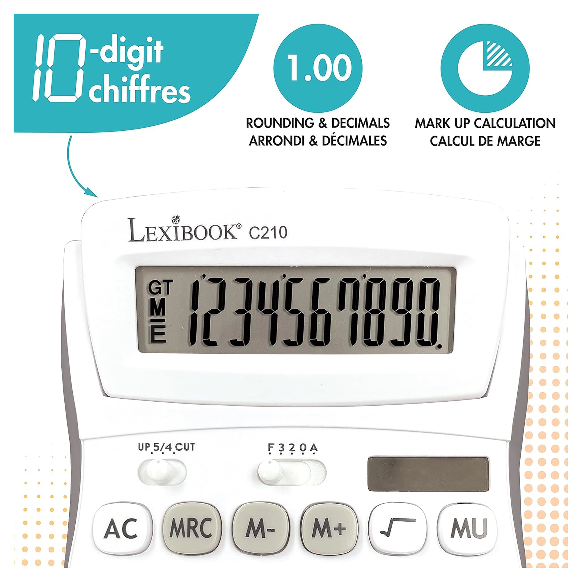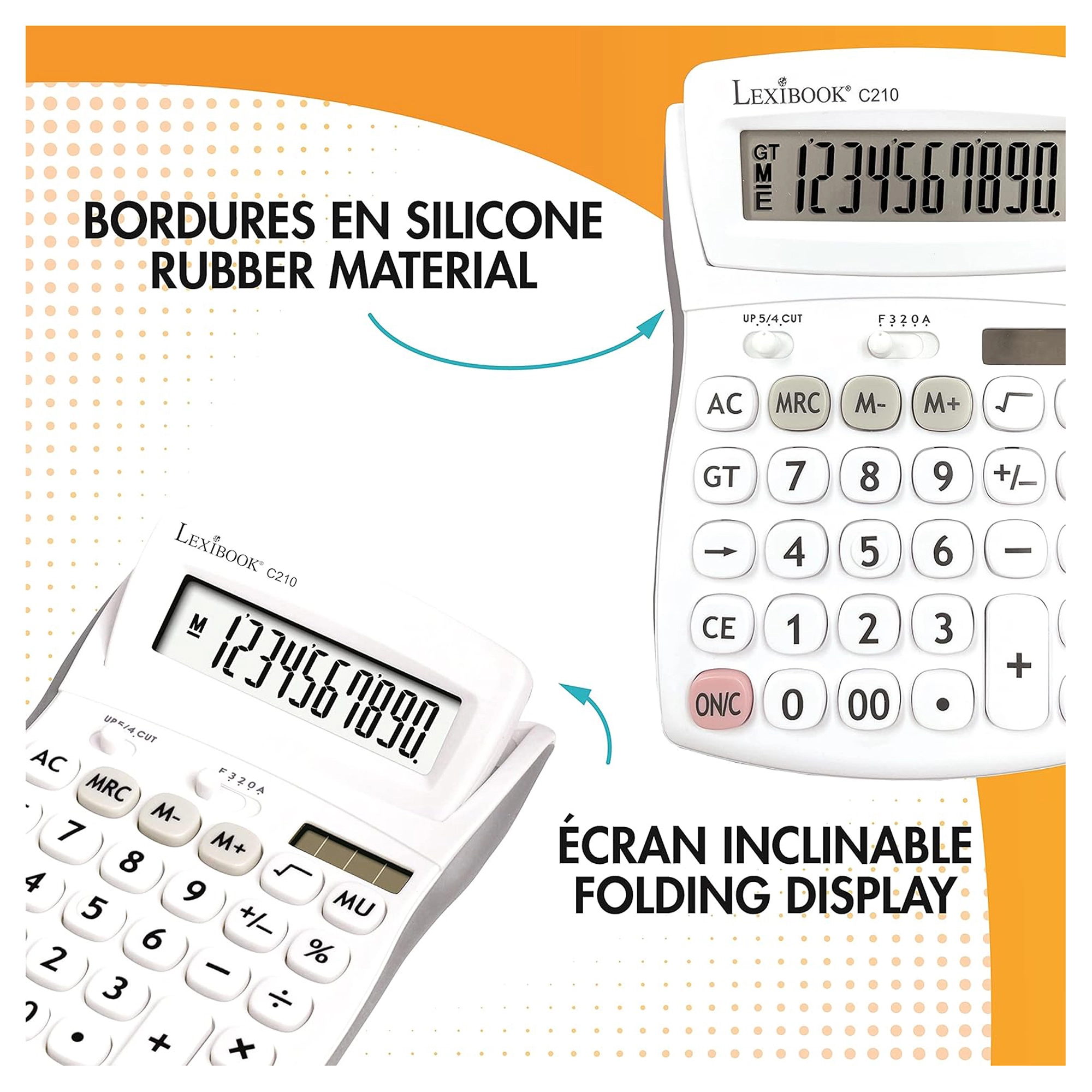 Cette calculatrice pratique à 10 chiffres est conçue pour une utilisation quotidienne au bureau, à l’école et à la maison. Le grand écran rabattable 1 ligne permet d’ajuster confortablement l’angle pour une meilleure lisibilité, tandis que les grandes touches caoutchoutées et robustes assurent une saisie précise et agréable.