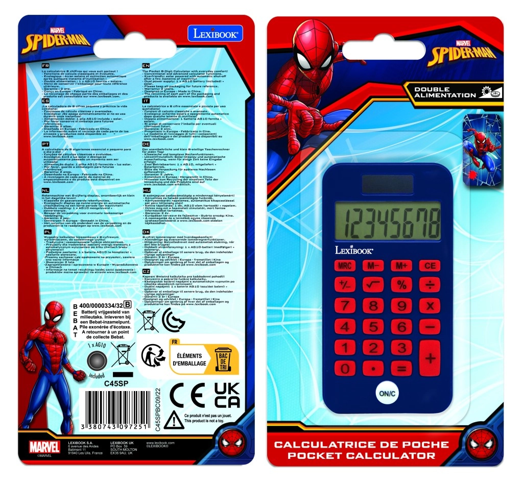 Offrez aux enfants un outil scolaire pratique et amusant avec leur héros préféré SPIDER-MAN. Légère et petite, cette calculatrice est idéale pour les voyages comme pour l’école – elle se glisse facilement dans une trousse ou une poche, et la coque de protection prévient les dommages sur l’écran et les touches.