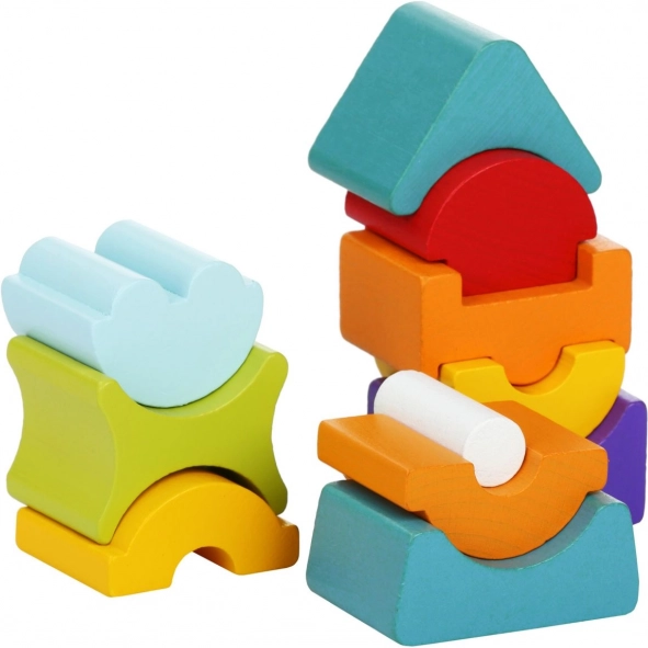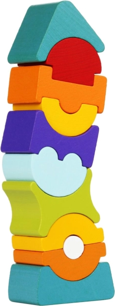 Les éléments arrondis permettent de construire la tour droite ou inclinée sur les côtés. Les enfants exercent leur patience, leur coordination et leur représentation spatiale à chaque tentative.