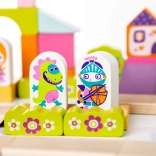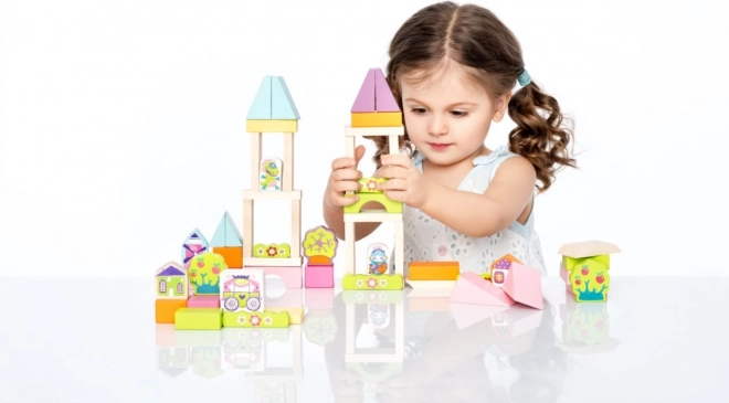 Le jeu de construction en bois Ville féerique est un choix idéal pour les enfants qui aiment créer et imaginer. Cet ensemble comprend 55 blocs permettant de construire des maisons, des ponts, des châteaux et des tours. Jouer avec les blocs développe les capacités sensori-motrices, la pensée logique et la créativité.