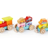 Ce puzzle en bois coloré contient 14 pièces, permettant aux enfants d'assembler un train avec deux wagons et huit petites voitures. Ils jouent non seulement avec les différentes pièces, mais développent aussi leurs capacités sensori-motrices, raisonnement logique et créativité.
