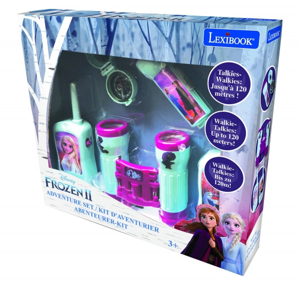 Ce kit d’aventure pour enfants, avec les personnages appréciés du ROYAUME DE GLACE, encourage le mouvement, l’imagination et le jeu d’équipe. Les enfants communiquent facilement via les talkies-walkies au son numérique clair avec le simple bouton « TALK ». La lampe de poche est utile pour les parcours nocturnes et l’envoi de signaux secrets, les jumelles favorisent l’observation de l’environnement et la boussole de jeu complète l’équipement des petits explorateurs.
