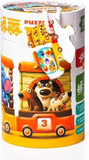 Le puzzle ludique et éducatif Puzzlika Train pour les tout-petits aide les enfants à apprendre les chiffres 1–10, à reconnaître les animaux et à développer la logique ainsi que la motricité fine. Avec 20 pièces robustes, composez un petit train de 94 cm de long avec une locomotive et des wagons, où chaque nombre d’animaux correspond au chiffre approprié.