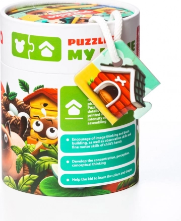 Plongez dans un apprentissage ludique avec le puzzle Puzzlika Ma maison. Les enfants associent l’image d’un animal à son habitat typique, développant naturellement leur raisonnement logique, leur vocabulaire et la coordination œil-main. Les grandes pièces, faciles à saisir, sont idéales pour les petites mains.