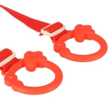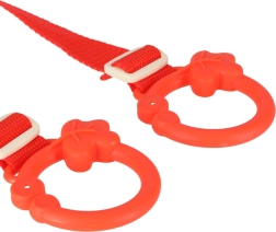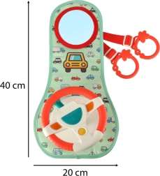 Le jouet se fixe facilement à l'arrière du siège avec des anneaux en plastique, garantissant stabilité et sécurité.