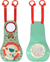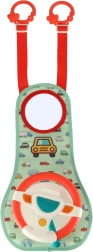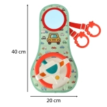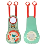 Ce volant interactif pour voiture, conçu pour divertir votre enfant pendant les voyages, comprend un panneau coloré avec volant et un rétroviseur sécurisé. Il comporte quatre boutons et un levier sensoriel offrant des sons et des lumières colorées, stimulant l'imagination et les perceptions sensorielles des enfants.